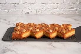 Fine semolina, grated coconut, almonds and syrup